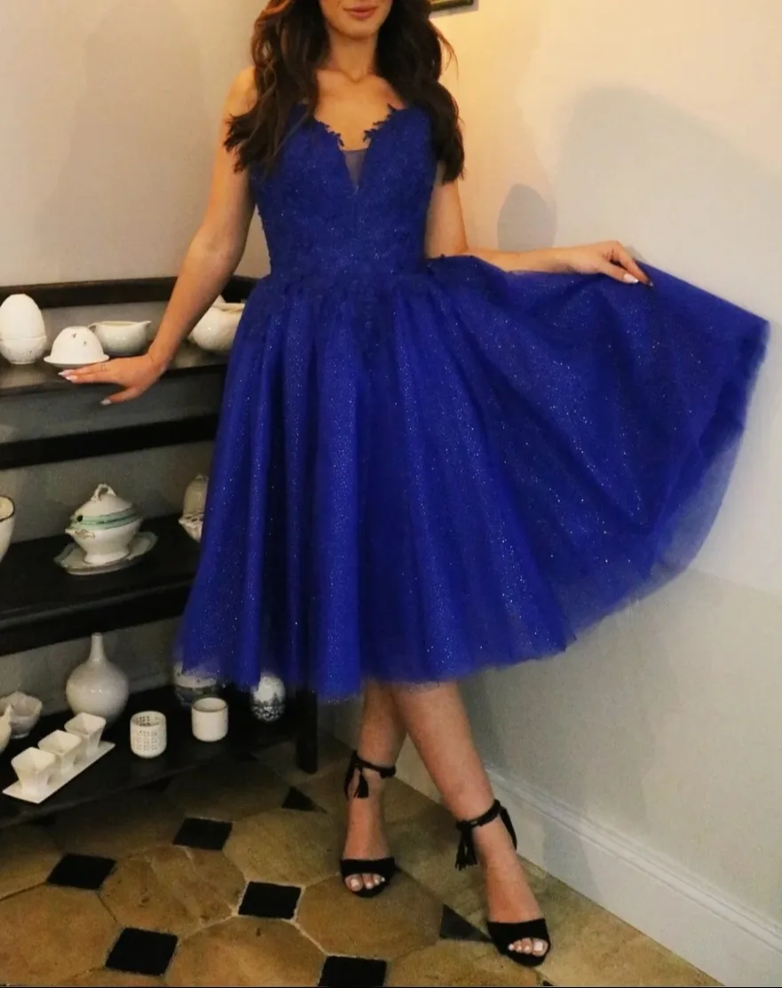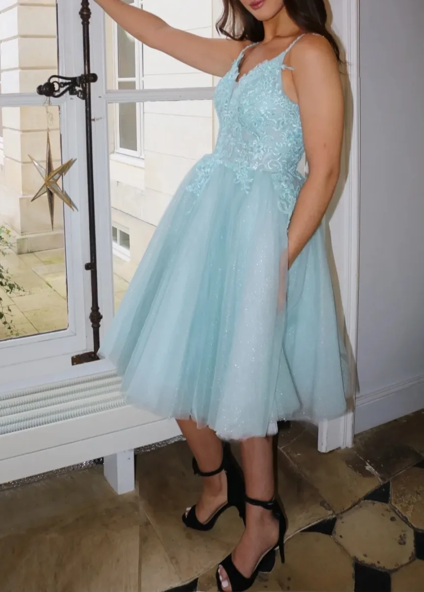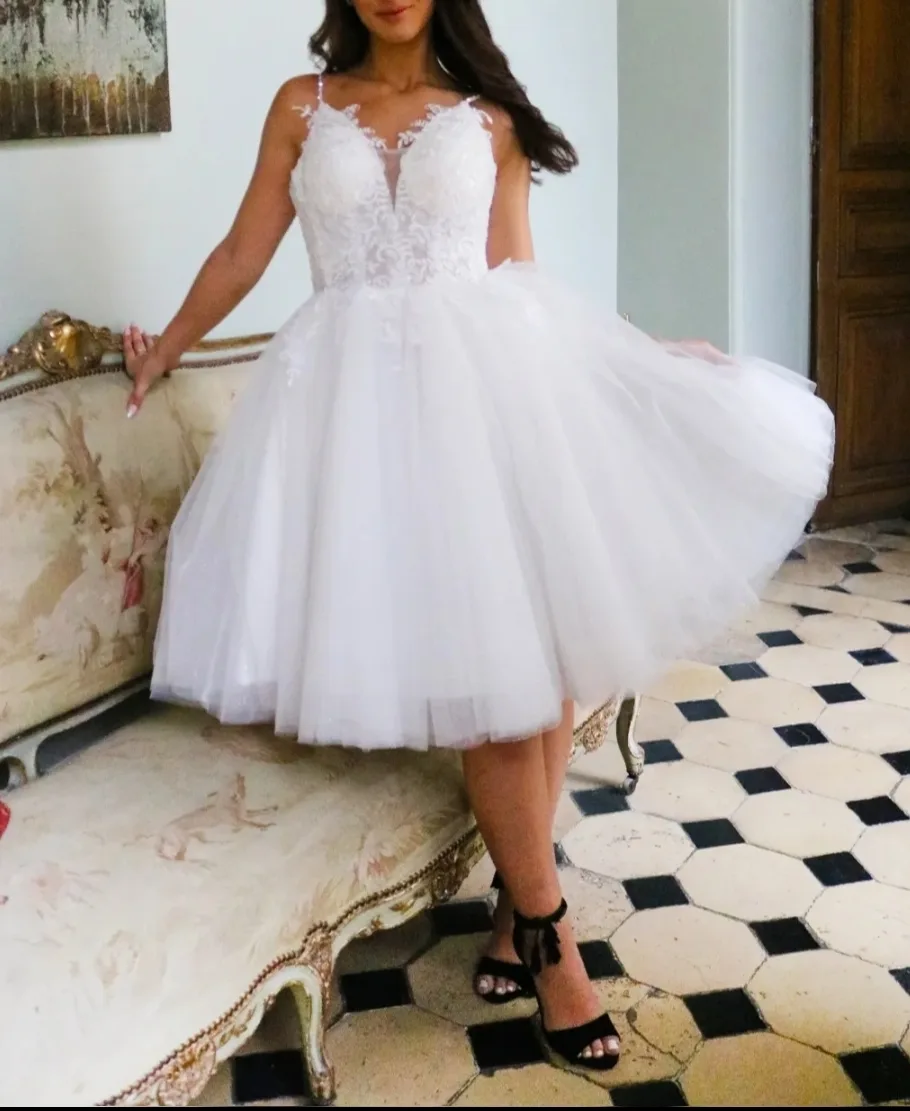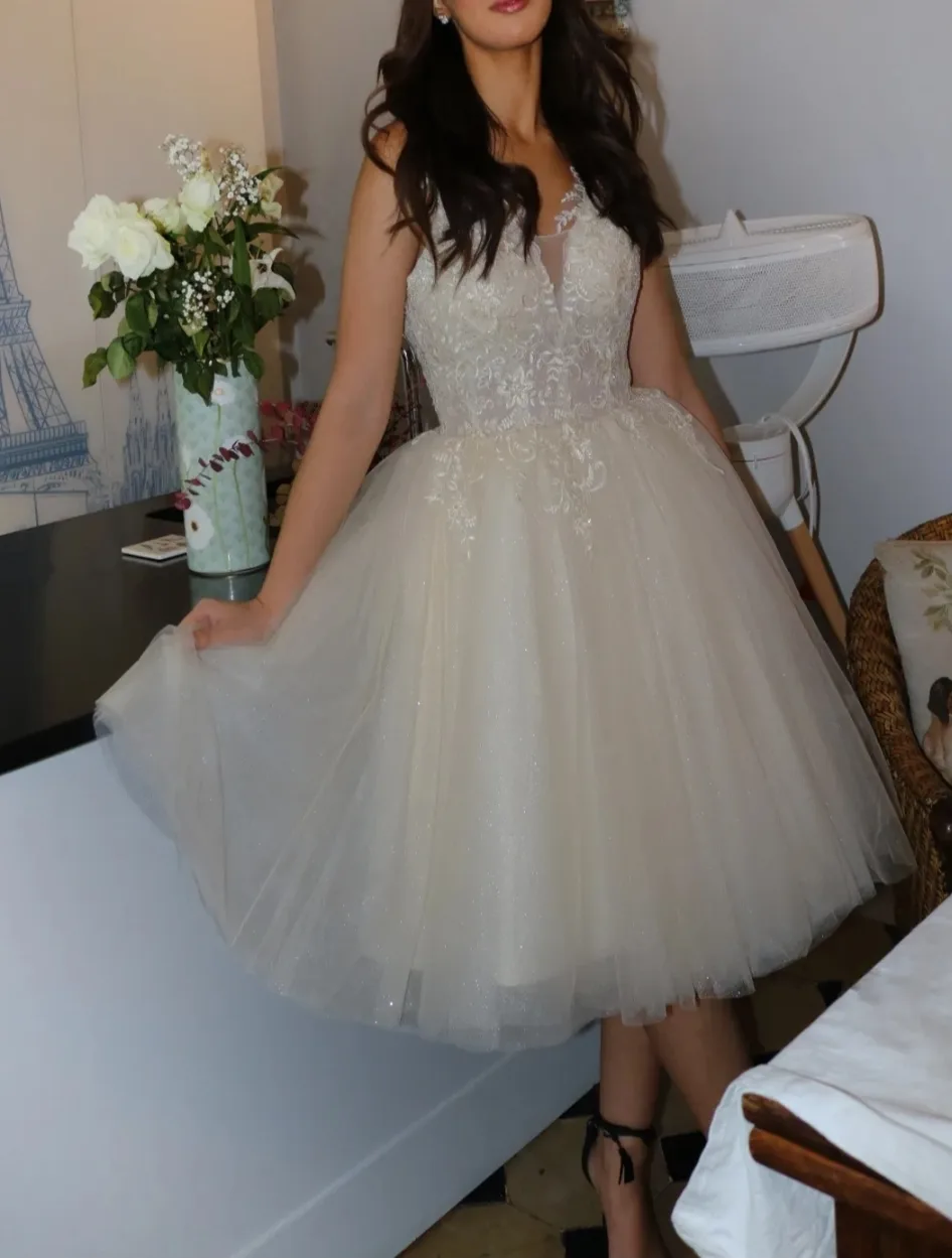 Robe de cérémonie courte style princesse en tulle et dentelle