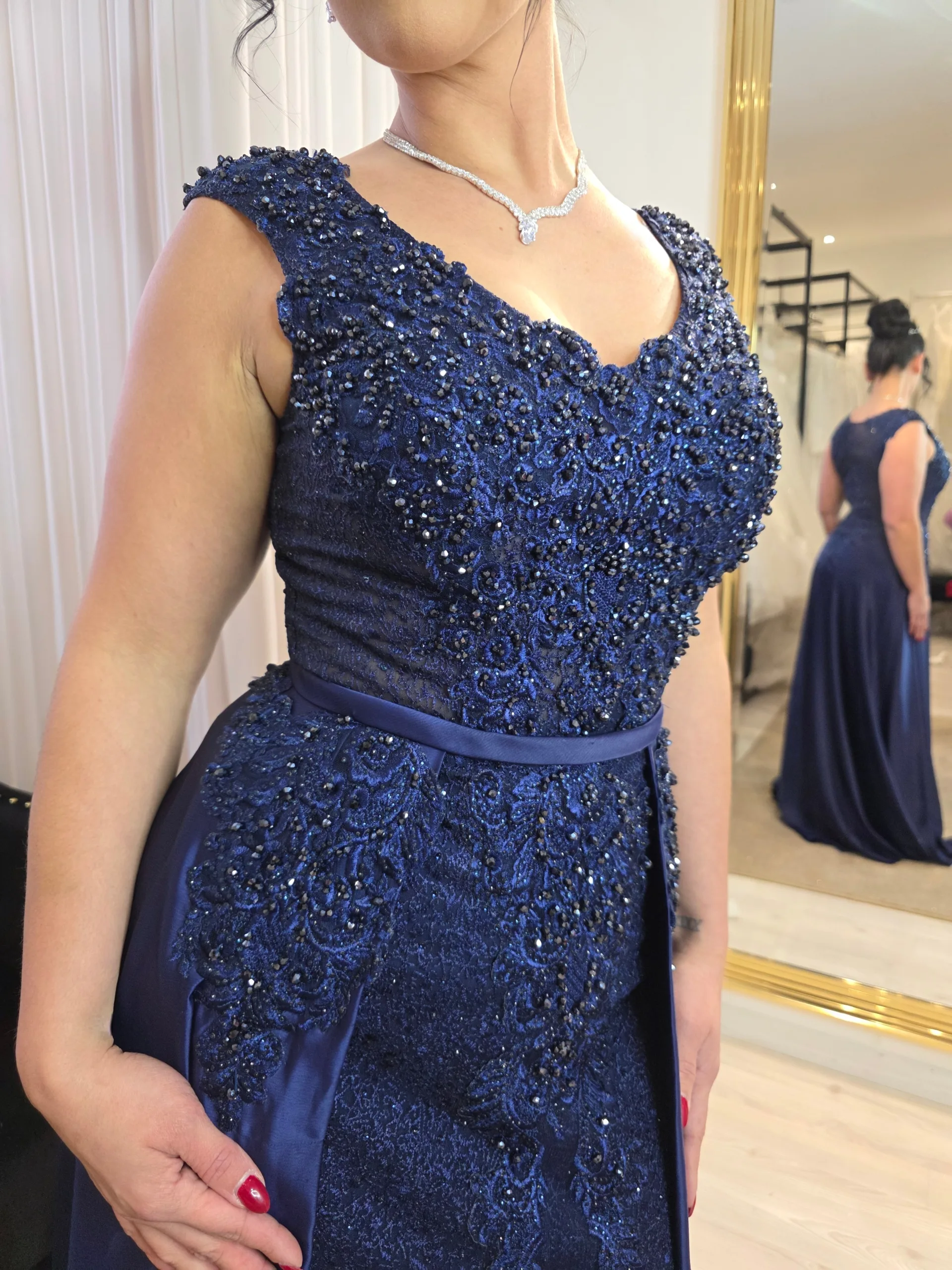 Robe de Soirée Sirène Brodée sur-jupe – Éclat Perlé, Dentelle et Élégance Sensuelle